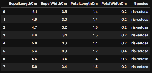 # 次は最初の8行を表示してみます Iris.head(8) |