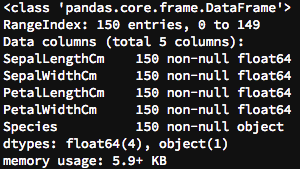 # info()を使ってIrisデータフレームをみてみる Iris.info() |