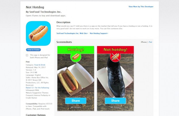 画像の分類で面白い一つの事例として、「Not Hot Dog 」(ホットドッグを見分けるアプリ)というアンドロイドのアプリがあります。このアプリはアメリカで大人気のテック系スタートアップドラマ「Sillicon Valley」の中で出てくるジョークのアプリですが、実際にGoogle Playでダウロードをすることも可能です。