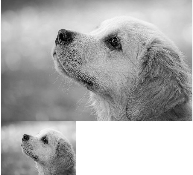 [In] : #画像をグレースケール化して読み込み ※画像ファイル名の箇所は適宜変更してください。 original = cv2.imread('dog_image.jpg',0) |