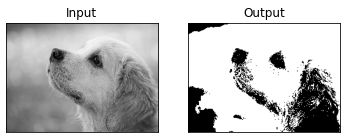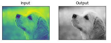 [In] : #画像を表示するための関数を定義 def show_img(Input,Output): plt.subplot(121) #画像の位置を指定 plt.imshow(Input) #画像を表示 plt.title('Input') #画像の上にInputと表記 plt.xticks([]) #x軸の目盛りを非表示 plt.yticks([]) #y軸の目盛りを非表示 plt.subplot(122) #画像の位置を指定 plt.imshow(Output) #画像を表示 plt.title('Output') #画像の上にOutputと表記 plt.xticks([]) #x軸の目盛りを非表示 plt.yticks([]) #y軸の目盛りを非表示 |