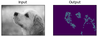 [In] : #エッジ検出 edges = cv2.Canny(img,180,300) #関数を利用して画像の表示 show_img(img,edges) |